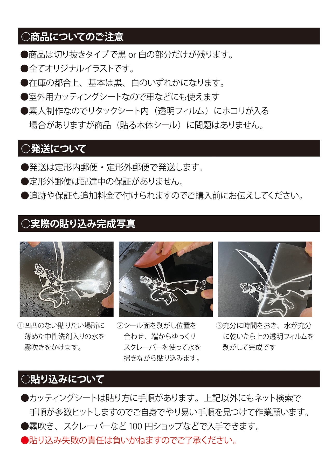●貼り込み失敗の責任は負いかねますのでくれぐれもご了承ください。